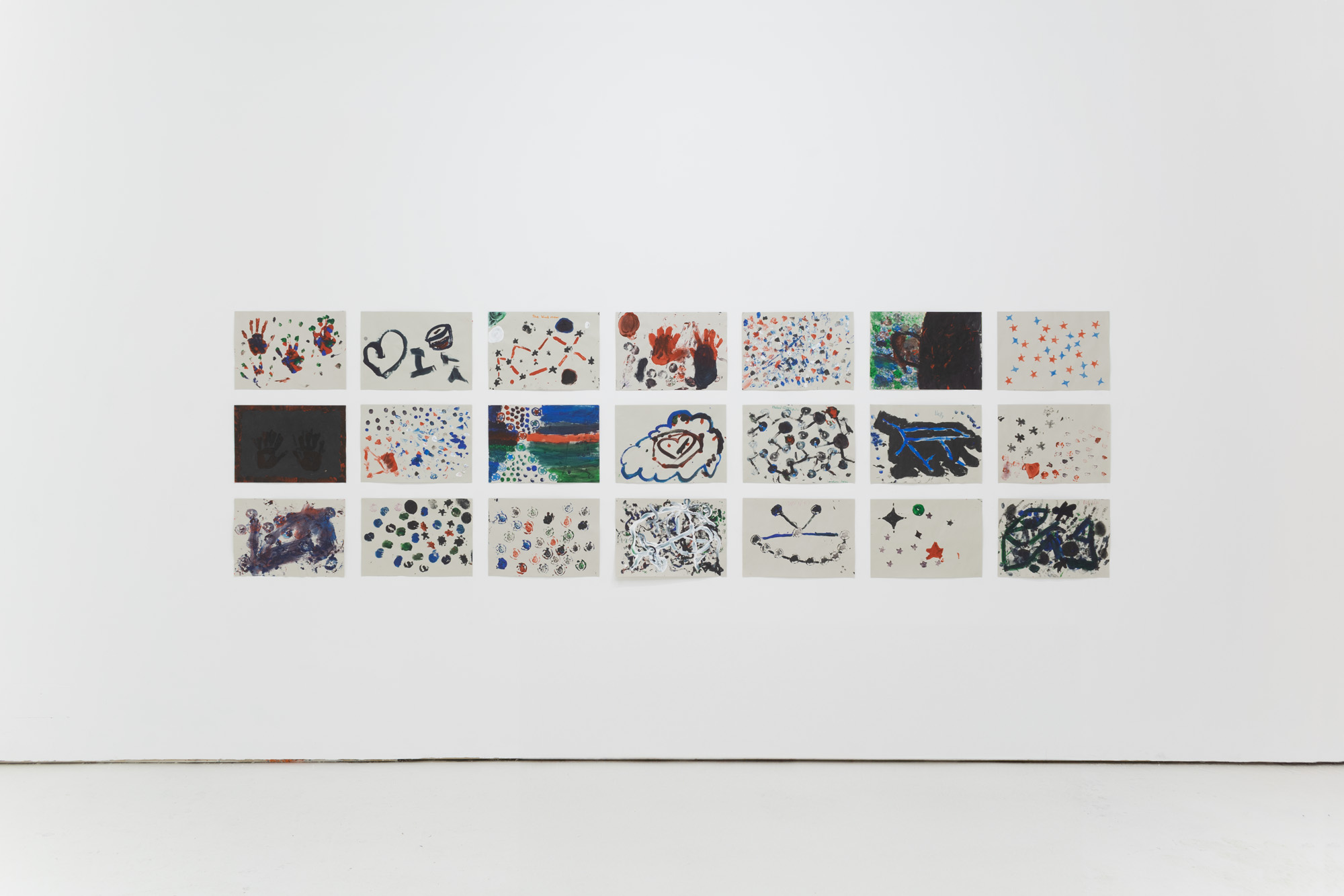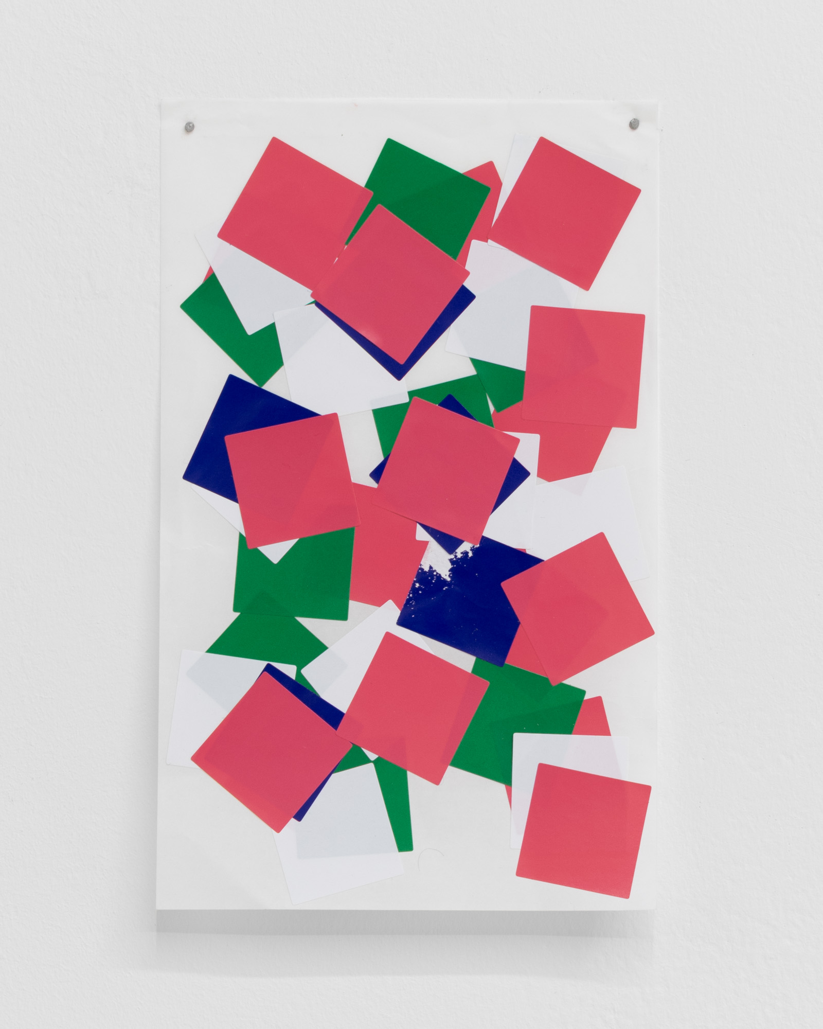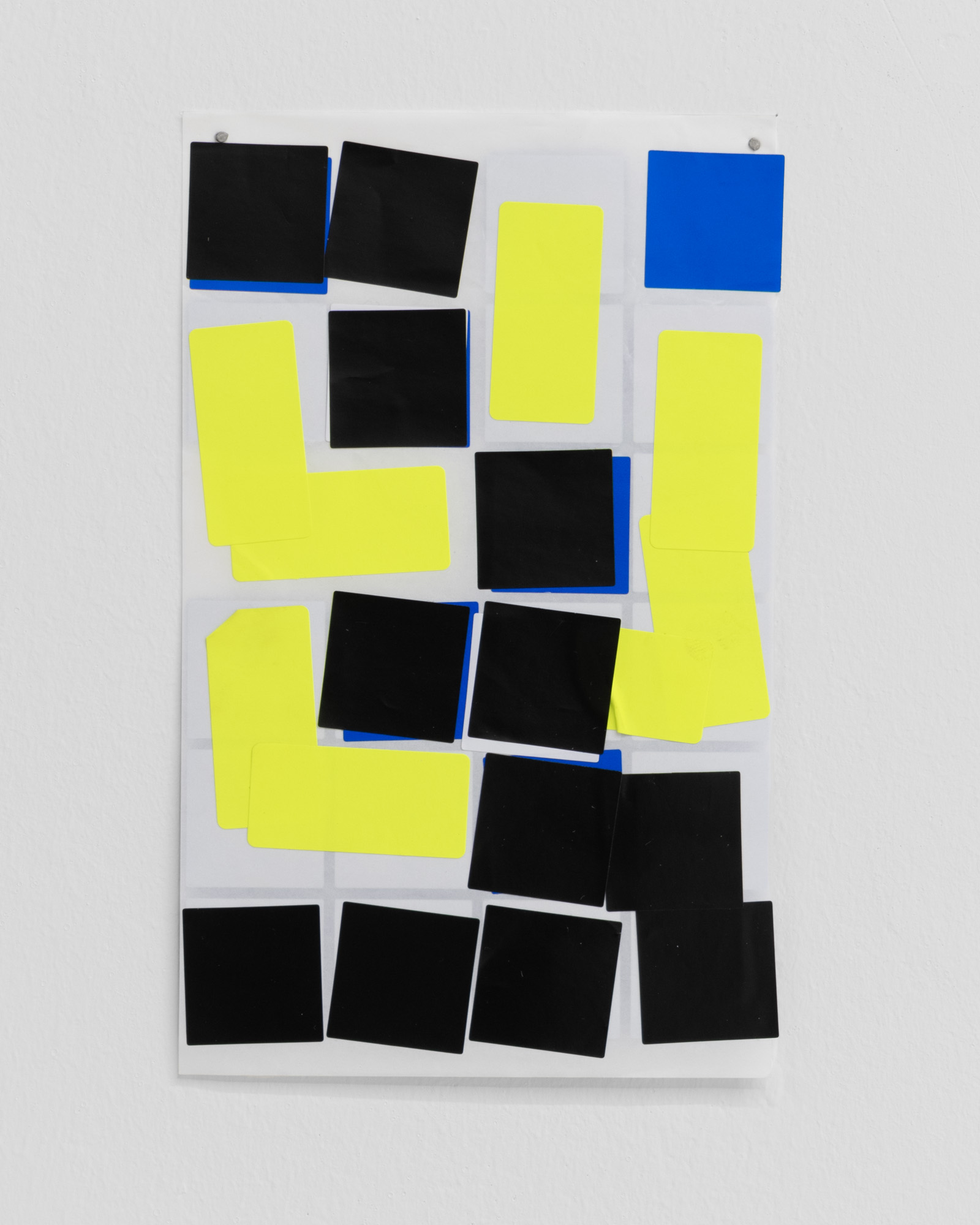 Helmut Smits asked people to create chaos from order, using simple sticker sheets. Each taking one sheet, they were asked to take off all the stickers from one side, and use them on the reverse in order to make a new work of art.