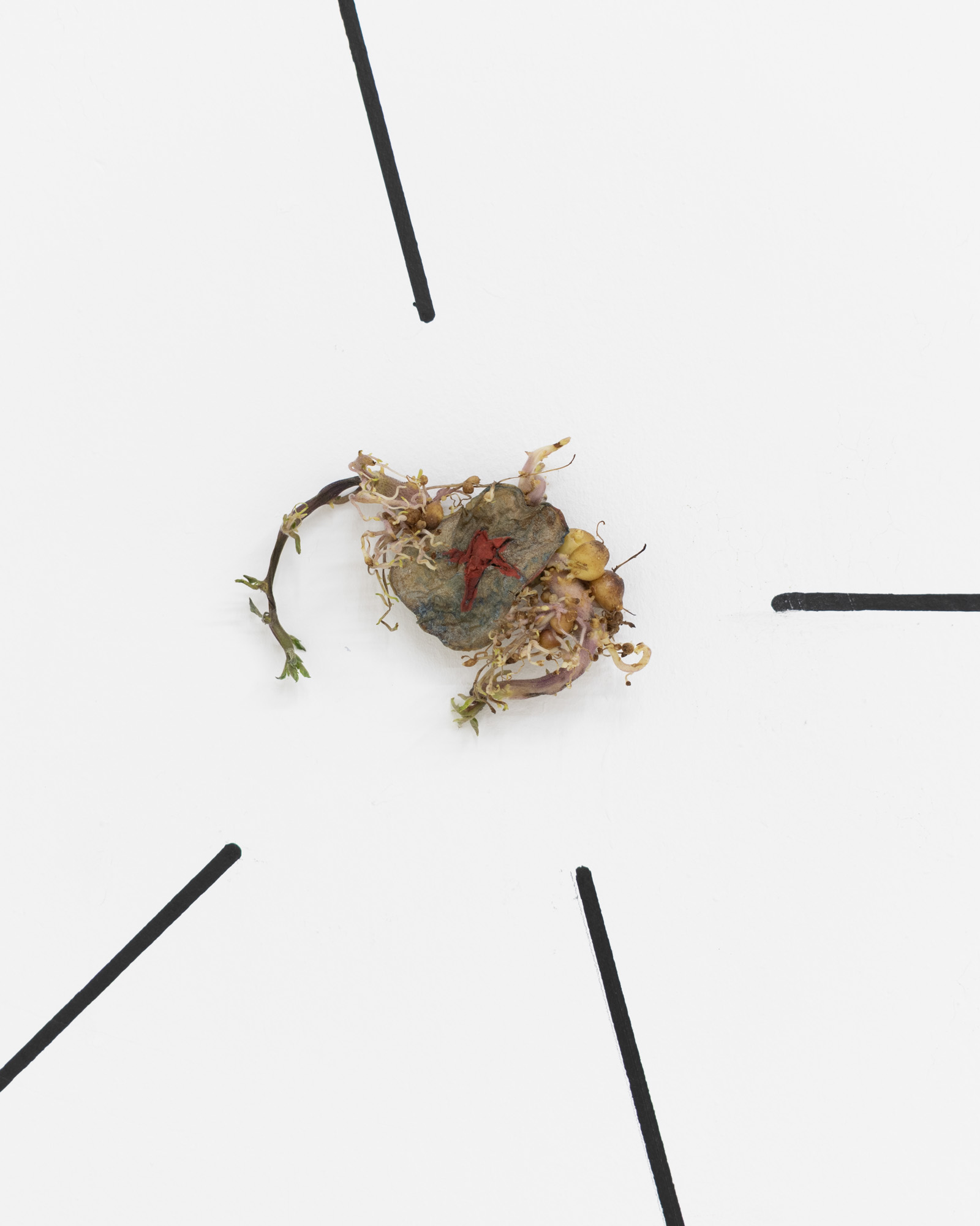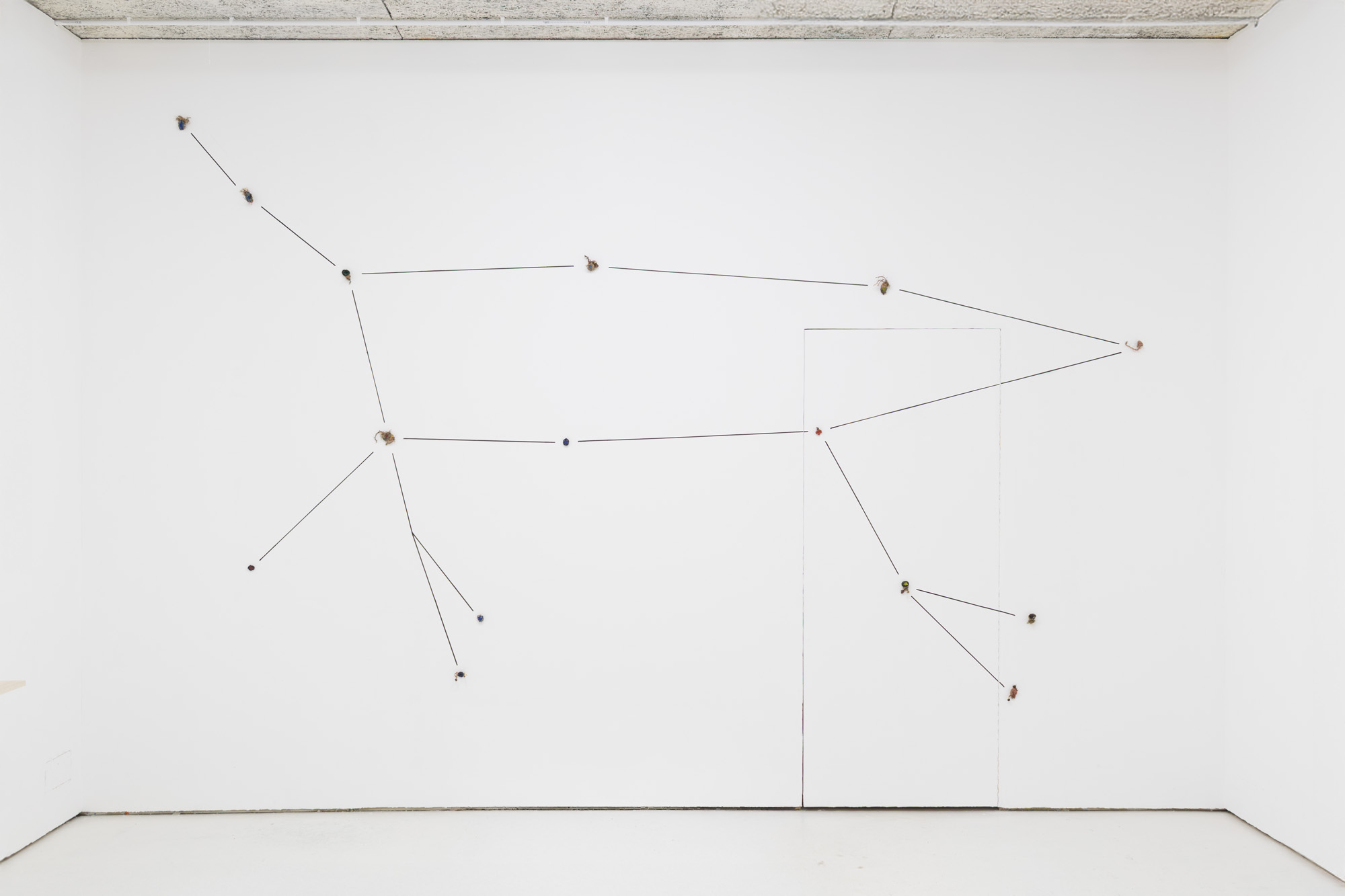 Harry Grundy asked participants to carve stars into potatoes, to make their own constellations. Some of the potatoes used have been kept, and now form the mural on the back wall, depicting the constellation of The Great Bear.